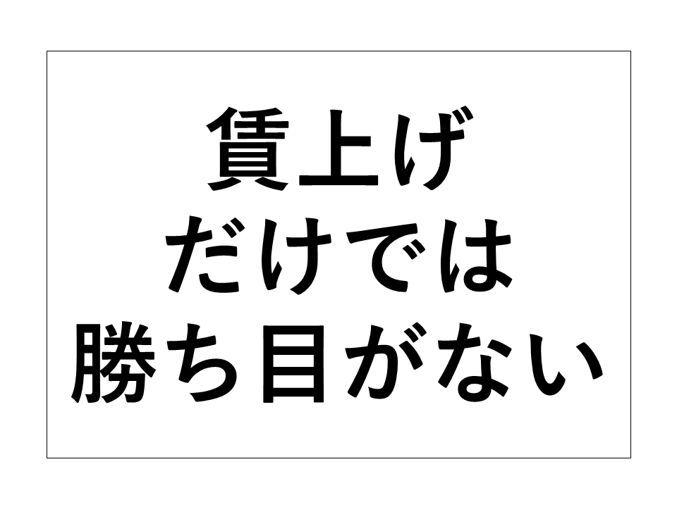 世間相場に一定程度追いついた賃上げは必要ではあります。しかし、賃上げだけでは採用面で大企業に勝てず、中小零細企業間でも人の採り合いになります。